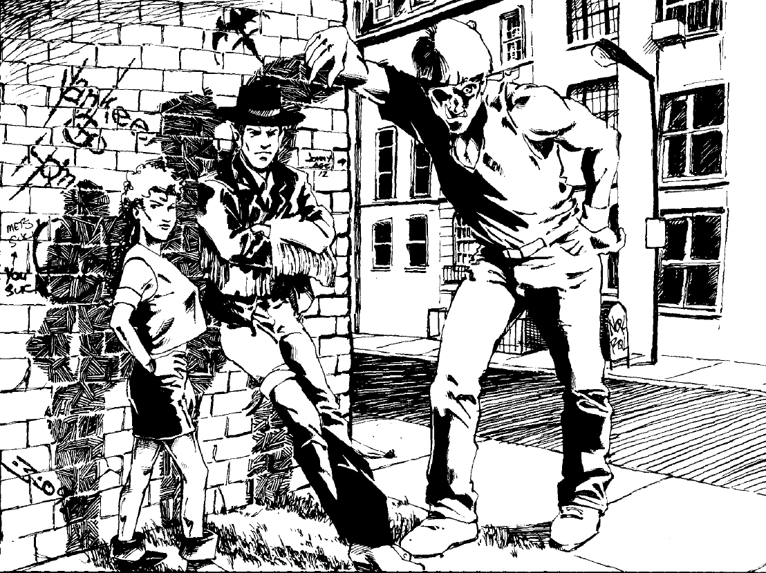 Most of the 1st ed authors were big fans, so they put the logo in everywhere. YOu can also see song lyrics scrawled as graffiti in some art.